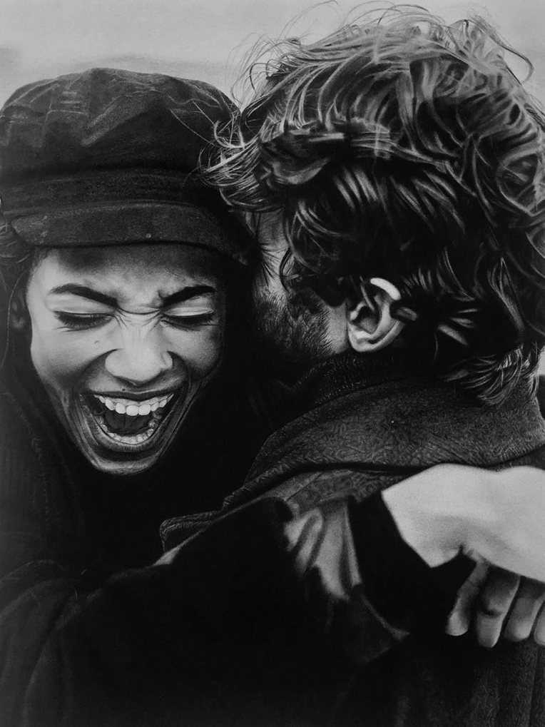 Dans Abandon, le geste est simple mais fulgurant : un rire franc, un visage ouvert, une étreinte serrée. Rien n’est figé, tout est mouvement, chaleur, proximité.